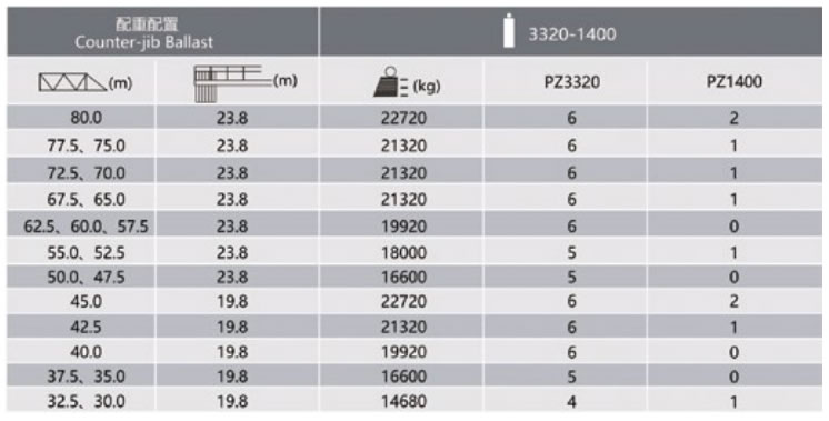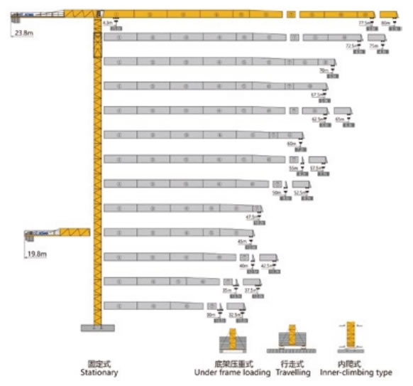 獨立高度***臂長的自重(不含平衡重,不含壓重)
